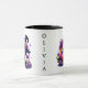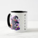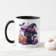 Una adorable calabaza naranja kawaii chibi con flores moradas en ella Feliz tazón de café personalizado de Halloween.