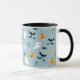 La taza de café con fantasmas de Halloween, calabazas, telarañas y murciélagos son suaves y azules.