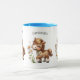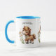 Una taza con un ilustracion adorable. Un pequeño poni marrón comiendo alegremente margaritas.