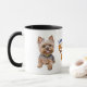 "You Make My Tail Wag" declara esta linda taza con la imagen de un adorable perro de Yorkshire Terrier a cada lado del texto. Corto para el propietario yorkie, pero apropiado para cualquiera. Puede agregar el nombre de alguien en el centro inferior o borrar el texto, si lo desea.
