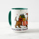 A Cute Dachshund Cartoon Christmas Mug Designed On A Green Combo Mug