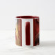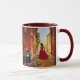 Un tazón de café con una pintura de una mujer de color rojo con un lindo gran gato de esmoquin en un romántico pueblo italiano. Puede agregar el texto o los textos de su personalizado si lo desea.