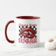 Dame unos labios rojos azucarados, cajas de cuadros blancas y negras, corazones rojos, un regalo día de San Valentín divertido
