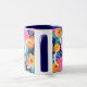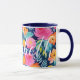 Taza Dark Blue Hot Pink Yellow Happy Floral Custom Name