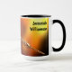 A coffee mug for those who love the game of darts. The design features the unique image of a large dart speeding like a rocket across a colorful background. Personalize it with any name. The text is easily changed by using the template. For other desired changes (different type font, color, size or placement) select "Personalize this template" then select "Edit using Design Tool." If the Edit selection does not appear, the Personalize selection will automatically take you to a page where numerous edits are available. See Options for other styles and sizes of mugs. You may want to also scroll down to the section labeled "Transfer design to a product" for a few suggestions about other products this design can be used on.