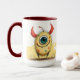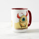 Ein freundliches, fröhliches Ein-Auge-Monster mit bunten Punkten und roten Hörnern. Perfekt für Kinderprodukte, Grußkarten oder Poster im Kinderzimmer – es bringt Spaß, Farbe und ein Lächeln in den Alltag.