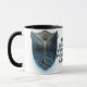Taza azul del fútbol de la fantasía del delfín