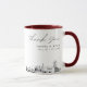 Taza de café moderna con el horizonte de Mesa, regalo de favor con guión "gracias". El diseño muestra un boceto impresionante con la capacidad de personalizar sus nombres y ubicación exacta. Ingrese a la herramienta de diseño de Zazzle para personalizaciones adicionales.
