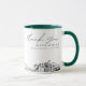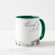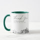 Taza de café moderna con el horizonte de Jacksonville favor regalo con "gracias" guión. El diseño muestra un esbozo impresionante con la capacidad de personalizar sus nombres y ubicación exacta. Ingrese a la herramienta de diseño de Zazzle para personalizaciones adicionales.
