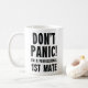 Esta deliciosa taza blanca muestra la frase '¡No te pongas en pánico! Soy un primer matón profesional". Es perfecto para aquellos que trabajan en la industria marítima, ya sea en el mar o en la oficina, lo que lo convierte en un regalo ideal para promociones o simplemente para iluminar tu espacio de trabajo.