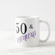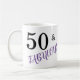 Este lindo diseño es para celebrar el cambio de 50 con texto negro y púrpura.