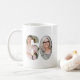 Celebrate a 60th birthday party with this custom photo mug. Add two photos ("then and now") to create a personalized keepsake they'll love. Write your custom happy birthday message on the back. Elegant photo gift with cool black and white modern typography.