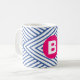 Taza De Café Abstract Blue Stripey Pattern Pink Monogram