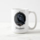 Establece el tono para un ritual matutino sombrío con esta taza de café de cerámica personalizada. Este diseño impactante presenta un cuervo negro detallado posado dentro de un marco victoriano ornamentado, representado en una paleta sofisticada de carbón y tinta. Es la forma perfecta de celebrar una ocasión especial o un regalo considerado para un entusiasta de la literatura y la naturaleza.