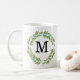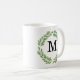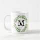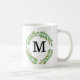 Taza De Café Acuarela Monograma Oro Hojas Verdes Wreath