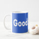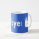 Fondo azul famoso con "adiós!" impreso en la mano que agita blanca blanca y simple.