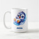 Dibujo muy lindo personalizado de un bebé pingüino sonriendo mientras se desliza por un poco de hielo. Esta taza está disponible en muchos tamaños y estilos. No olvide personalizar el nombre