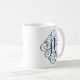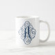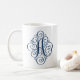 Taza de café azul marino personalizada con monograma ornamentado