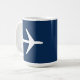 Funky White Plane Dark Blue Background Coffee / Tea Mug Cup para añadir a su colección de bebidas de casa / oficina. Un regalo fresco / idea de regalo para todos los que aman los elementos de diseño personalizados, vibraciones positivas, cielo, vuelo, aviación, etc. Aerolíneas, aerolíneas, cielo, aire. Cambie el color de fondo (azul) para que se ajuste a su estilo.