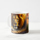 A fearless tiny ant stands boldly on the ground, gazing up at a massive, majestic male lion towering above with flowing golden mane and piercing amber eyes. This stunning artwork captures the powerful message that true courage makes us all equal, no matter our size. Dramatic low-angle perspective emphasizes the epic scale contrast between the delicate insect and the king of the jungle, bathed in warm golden hour light with hyper-detailed fur and exoskeleton textures.