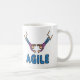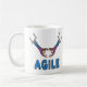 Agile design muestra a artistas trapecio sobre la palabra Agile creando un divertido gráfico para gurús ágiles, maestros de matorral y equipos de proyectos.
