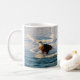 El águila calva en el lago helado agrega una nota llamativa a la taza de café de cerámica.