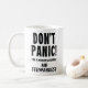 Esta deliciosa taza blanca muestra la frase '¡No te pongas en pánico! Soy una azafata profesional". Es perfecto para aquellos que trabajan en la industria de la aviación, proporcionando un toque alegre al uso de la oficina o como regalo de equipo para cumpleaños y promociones.
