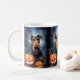Taza De Café Airedale de Halloween con calabazas aterradoras