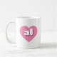 Esta taza presenta dos corazones rosados que contienen las letras fundas al, negrita, blanca, redondeada y baja, una abreviatura juguetona para Alabama, el estado martillo amarillento. ¡Marea rodante!