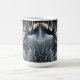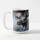 Un alce de toro en un arbusto espeso, y pinos, en una niebla matutina