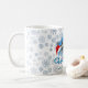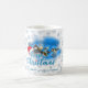 Hermosa aldea invernal se escondió en la nieve con un árbol de Navidad y luces. Un paisaje nocturno de Navidades en magia azul con un guión de caligrafía navideña de Feliz, un gorra Navidad, dulces y cerezas de invierno. Sobre el fondo y el suave patrón de copos de nieve. Personalice cambiando el texto. Felices fiestas!