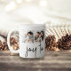 El moderno y festivo diseño de tazas navideñas incluye cinco fotos cuadradas favoritas alineadas una al lado de la otra, con "alegría al mundo" debajo de la letra manuscrita de la moda.