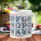 Mug de azulejos con flores de estilo mediterráneo. Agradable para los niños que aprenden el alfabeto o para los adultos jardineros y amantes de las flores.