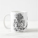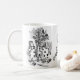 Alicia en conejo de las imágenes del país de las maravillas carda al sombrerero enojado. Ofrece el conejo blanco en su juego del corazón, soplando su cuerno, y el sombrerero de la materia en el funcionamiento, y a los hombres de la tarjeta de la espada que pintan el arbusto color de rosa rojo en el jardín de la reina. Una diversión caprichosa, taza blanco y negro que está disponible en diversos tamaños y tasación. Más productos de Alicia en los niños y la categoría del boda