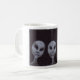 ¡Un dibujo a lápiz de color de tres ETs Gris alienígenas contra un cielo negro estrellado adorna esta taza!