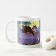 Bajo un cielo dorado, rodeado de flores violetas, un gatito alienígena de seis patas, con piedras preciosas, se relaja junto a una piscina de nenúfares. Regalo humorístico para todas las edades pero especialmente apropiado para los niños.