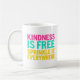 Disfrute de su bebida favorita con una dosis diaria de inspiración. El diseño de esta taza incluye la cita edificante "La amabilidad es libre, espolvoréela por todas partes", con un bonito estilo para alegrar la mañana y recordarte que compartas positividad. La tipografía encantadora y el mensaje más sincero hacen que sea perfecto para añadir calor a los momentos de café o té. Este diseño es un gran regalo para los defensores de la bondad, los amantes de la positividad, o cualquiera que disfrute de citas motivacionales. Ideal para el hogar, la oficina o el obsequio a amigos y familiares, es una forma sencilla de rociar amabilidad todos los días.