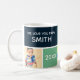 Nos Encanta Papa Personalizado Personalizado Fotocafé Mug. Un bonito bloque de color nos encanta, papá personalizado café taza de café. Este diseño presenta un diseño de bloques de color de moda con espacio para 3 fotos, nombres personalizados y año. Hace el regalo perfecto de cumpleaños o Navidades para papá, abuelo y abuelo.