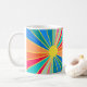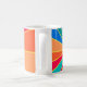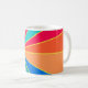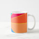 Esta taza tiene el diseño de un amanecer tropical en rojos, naranjas, azules y verdes.