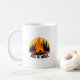 Camping/exterior camiseta de amante con el hermoso diseño de un bosque y fuego de campamento y texto que dice "todo está bien".