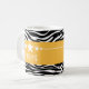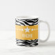 Moderno y moderno Sassy Star Zebra Mug con fondo de cebra en blanco y negro de moda y un atrevido borde amarillo adornado con un divertido motivo estrella. Este diseño ondulado puede ser personalizado con el texto personalizado de su elección. Haga clic en "Personalizar" para encontrar más opciones de personalización.