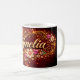 This personalized mug is a masterclass in sophisticated color theory, featuring the name Amelia in elegant gold lettering elevated by an inspired pairing of pink hearts and emerald green accents. The emerald adds unexpected richness, transforming what could be predictable into something genuinely remarkable. It's a design choice that reveals taste and confidence.