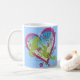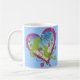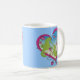 El par de amantes de los caballitos de mar verdes se encuentran en un corazón rosa con un fondo oceánico. Acentuado por follaje verde con corazones rosados más pequeños.