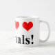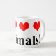 Texto de 'Me encantan los animales' sobre fondo blanco con tres corazones rojos.