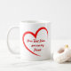 ¡Haz que cada sorbo sea un poco más dulce con este fango cardíaco personalizado! Ya sea por el Día de San Valentín, un aniversario, o solamente un recordatorio diario de tu amor, esta taza personalizado es un regalo sincero para tu persona especial. Añade tu propio texto para hacerlo verdaderamente único, perfecto para un novio, novia, esposo o esposa. Ya sea que busques la taza de una pareja linda, un diseño sentimental de ‘Eres mi corazón', o una taza de café romántica para alegrar sus mañanas, esta es la única. Personaliza tu día de hoy y haz que su día sea especial.