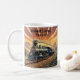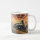 Taza De Café Añadir texto de nombre, tren de vapor al atardecer