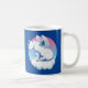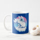 Un rinoceronte blanco con alas de ángel, sentado en la nube en el cielo. Diseño gráfico de la Concienciación sobre la conservación del rinoceronte en Coffee Mug.
