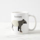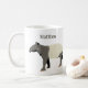 Esta taza está lista para ser personalizada con un nombre u otro texto personalizado. Presenta mi ilustracion de estilo realista de un tapir malayo o asiático en gris carbón vegetal y crema con tu nombre por encima del gráfico animal en la coordinación de las letras grises. El ilustracion y el texto aparecen a ambos lados de esta taza.