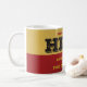 Mug de regalo para desear feliz aniversario a un bombero en el aniversario de su empleado. Como héroes, responden al llamado del deber con honor, integridad y autosacrificio. Esta taza muestra la palabra "héroe" en letras gruesas con el símbolo de bombero como O. Se ve un poco de sucia angustia representando el humo y la suciedad con la que lidian en los incendios. Emblema de Vecteezy.