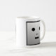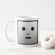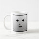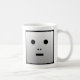 Un simple robot cuadrado con sombra gris y con un aspecto en blanco, tiene una especie de inocencia linda, no ha hecho muchos números todavía. El diseño se repite a ambos lados de la taza.